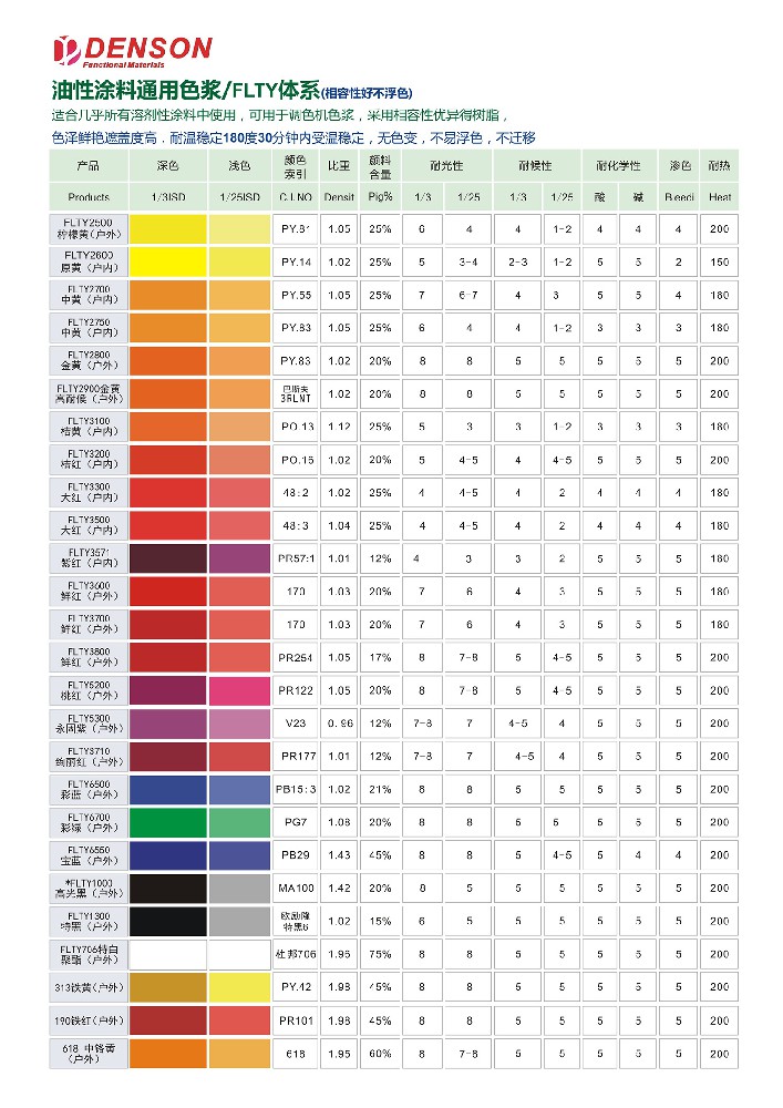 通用色浆油性通用颜料与水性通用颜料的色卡